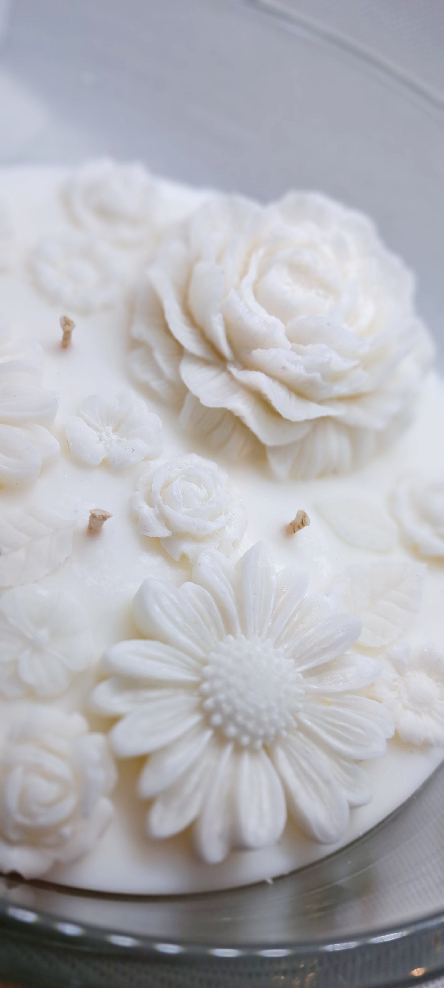 E ancora decorazioni in cera all'interno della candela realizzate secondo il tuo tema, etichette personalizzate, scritte in vinile per contenitori, parti dipinte a mano, aggiunta di glitter, foglia oro, argento o oro rosa, fiori, pietre e altro ancora!